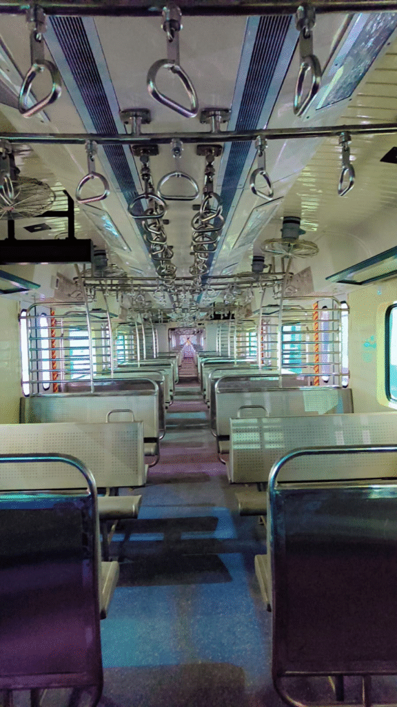 - The coaches have been provided with better air circulation inside the coach to give the feeling of freshness. It has more standing space and includes vestibule area. Passengers also can travel inside the train from one coach to another easily through vestibules.