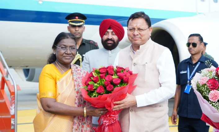 On Thursday, President Smt. Droupadi Murmu was warmly received and welcomed at Jolly Grant Airport in Uttarakhand by Governor Lt. General Gurmit Singh (Retd.) and Chief Minister Shri Pushkar Singh Dhami.