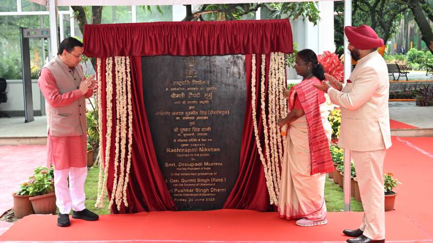 The President of India, Smt Droupadi Murmu graced the opening of Rashtrapati Tapovan and Rashtrapati Niketan at Dehradun today (June 20, 2025). She also inaugurated public amenities, including the Visitor Facilitation Centre, the Cafeteria, and the Souvenir Shop, and laid the foundation stone for Rashtrapati Udyan at Rashtrapati Niketan. She also inaugurated an amphitheater at Rashtrapati Niketan yesterday (June 19, 2025).
