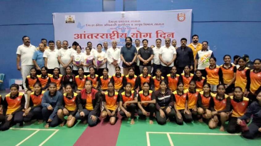 Minister Bhosale was speaking at a grand celebration of International Yoga Day held at the Shrimant Chhatrapati Shahu District Sports Complex in Satara. The event was jointly organised by the District Administration, District Sports Officer, and the AYUSH Department.