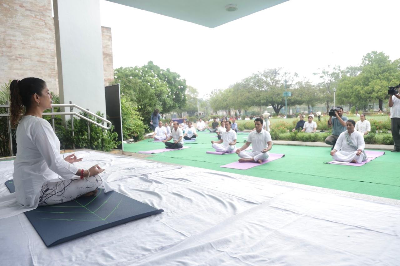 Jaipur – In celebration of the 11th International Yoga Day, the Harish Chandra Mathur Rajasthan State Institute of Public Administration (HCM RIPA) observed the occasion with enthusiasm under the theme “Yoga for One Earth, One Health.” The program commenced with the lighting of the ceremonial lamp by Institute Director General Mrs. Shreya Guha.