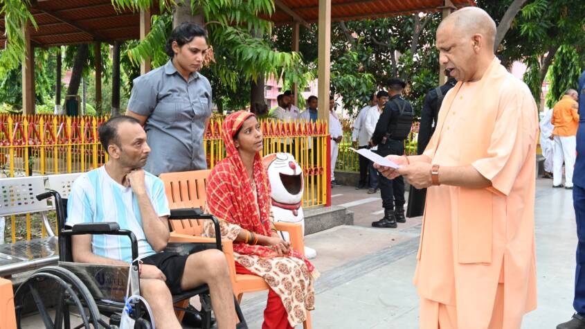 CM Yogi became emotional upon meeting a man in a wheelchair and assured him that lack of funds would not hinder his treatment.