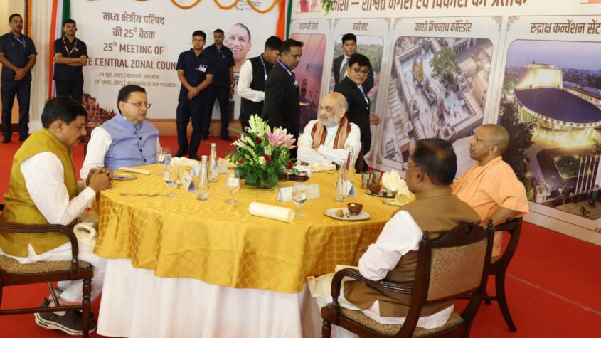 The 25th meeting of the Central Zonal Council will be chaired by Union Home & Cooperation Minister Amit Shah on Tuesday at Hotel Taj. Attendees will include host CM Yogi Adityanath, Chhattisgarh CM Vishnu Deo Sai, Madhya Pradesh CM Mohan Yadav, and Uttarakhand CM Pushkar Singh Dhami. Along with the Chief Ministers, two senior ministers from each member state will participate. The Chief Secretaries of the states, other senior state officials, and senior officials from the Central Government will also attend the meeting.