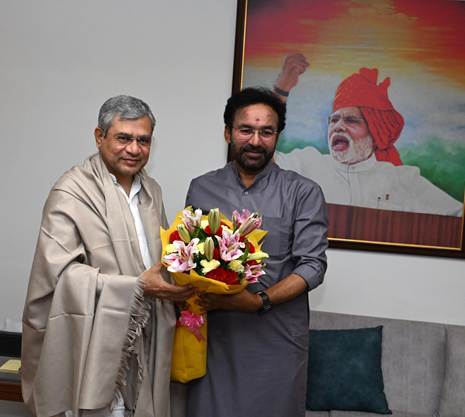 A high-level meeting was held today between Union Minister of Coal and Mines, Shri G. Kishan Reddy, and Union Minister of Railways, Electronics & Information Technology, and Information & Broadcasting, Shri Ashwini Vaishnaw, to review coal logistics and the efficiency of transportation systems.