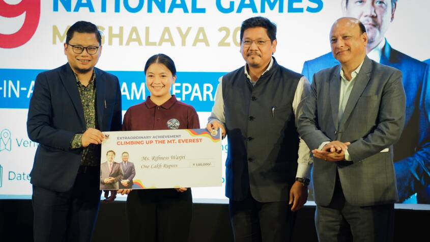 The event also saw the felicitation of 20-year-old Ms. Rifiness Warjri, who was awarded ₹5 lakh by HCM and ₹1 lakh by the DSYA, in recognition of her extraordinary achievement of summiting Mount Everest. In a light-hearted interaction, the Hon’ble Chief Minister asked her if she ever thought of giving up. She responded, “Conquering Mt. Everest is not easy. I experienced acute mountain sickness while climbing Lobuche Peak, but reaching its summit gave me the determination to aim for Everest”.
