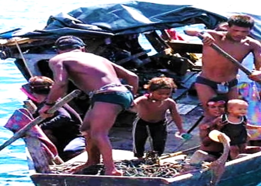 In Myanmar, Sea Gypsies see high capture of squid in sea.