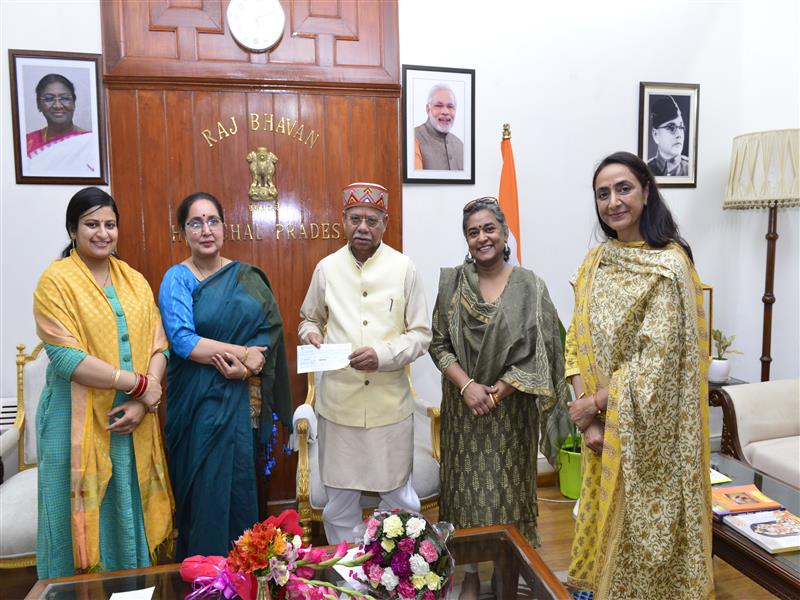 Members of the Hospital Welfare Section of the Himachal Pradesh State Red Cross Society called on Governor Shiv Pratap Shukla at Raj Bhavan today and presented a cheque of rupees 1.11 lakh collected by the IAS Wives Association as a contribution to the Red Cross.