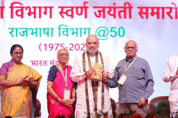 Union Home Minister and Minister of Cooperation, Shri Amit Shah, today addressed the ‘Golden Jubilee Celebration’ of the Department of Official Language in New Delhi as the Chief Guest. On this occasion, several dignitaries including Chief Minister of Delhi Smt. Rekha Gupta, Union Minister of State for Home Affairs Shri Bandi Sanjay Kumar, Vice Chairman of the Parliamentary Committee on Official Language Shri Bhartruhari Mahtab, Rajya Sabha MP Shri Sudhanshu Trivedi, and Secretary of the Department of Official Language Smt. Anshuli Arya were present.