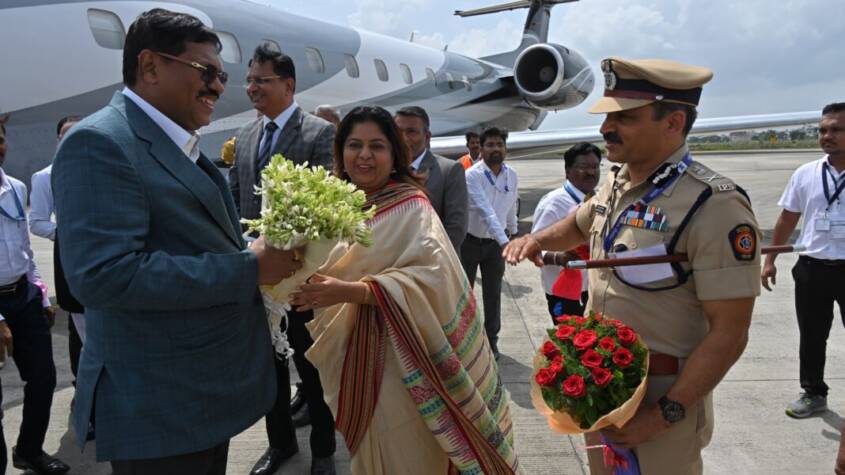 Nagpur : Chief Justice of the Supreme Court of India, Justice Bhushan Gavai, arrived today at Dr. Babasaheb Ambedkar International Airport in Nagpur. He was warmly received by judges of the High Court and senior officials of the administration.