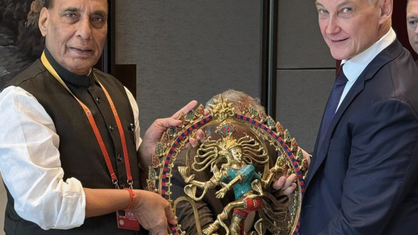 Raksha Mantri Shri Rajnath Singh held a bilateral meeting with the Russian Defence Minister Mr Andrey Belousov on the margins of the Shanghai Cooperation Organisation (SCO) Defence Ministers’ Meeting in Qingdao, China on June 26, 2025. The two Ministers held in-depth discussions on a range of subjects covering current geopolitical situations, cross-border terrorism and Indo-Russian defence cooperation.