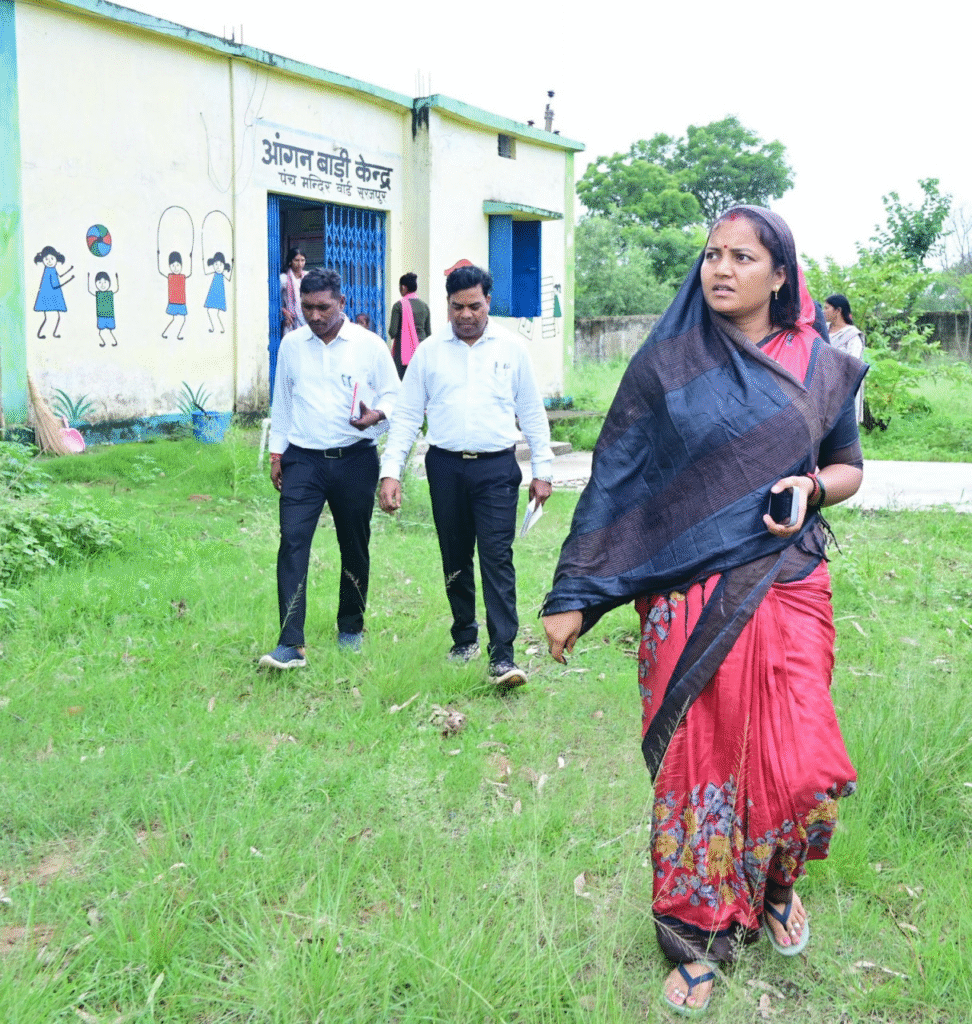 At the Anganwadi, she checked the attendance of children, the quality of the nutritional meals, vaccination records, and the use of the Nutrition Tracker app. She instructed staff to ensure regular monitoring of malnourished children and to provide them with high-quality, nutritious food.