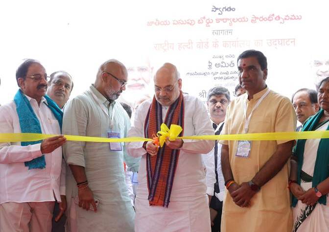 Union Home Minister and Minister of Cooperation Shri Amit Shah today inaugurated the headquarters of the National Turmeric Board in Nizamabad, Telangana. On this occasion, Union Minister of Coal and Mines Shri G. Kishan Reddy, Union Minister of State for Home Shri Bandi Sanjay Kumar, and several other dignitaries were present.