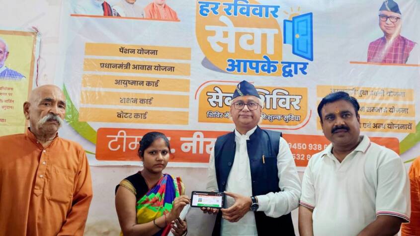 Lucknow : To ensure that citizens can easily access government welfare schemes, MLA Dr. Neeraj Bora has launched a new initiative titled ‘Har Ravivaar, Seva Aapke Dwaar’ (Every Sunday, Service at Your Doorstep). In the first service camp held at Sankatmochan Hanuman Temple in Agarsen Nagar, Faizullaganj, over 250 people received information about various schemes and submitted online applications on the spot.