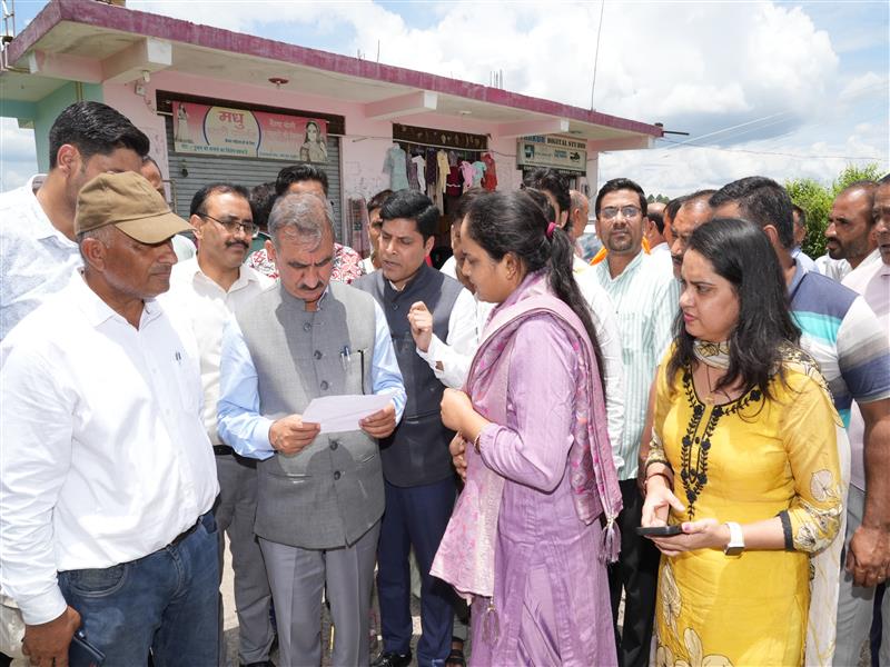 Chief Minister Thakur Sukhvinder Singh Sukhu today visited the disaster-hit Syathi village of Laungani Panchayat in Dharampur, Mandi where he met and interacted with the families affected by the recent cloudbursts, listened to the woes of the victims, shared their grief and reviewed the relief and rehabilitation operations being carried out by the district administration.
