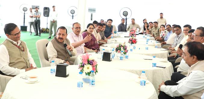 Union Minister of State (Independent Charge) for Science and Technology, Minister of State (Independent Charge) for Earth Sciences, MoS PMO, Department of Atomic Energy and Department of Space, MoS Personnel, Public Grievances and Pensions Dr. Jitendra Singh today hosted a warm and informal luncheon for Delhi based J&K AGMUT cadre officers from All India Services officers (IAS, IPS, IFoS) belonging to the erstwhile Jammu & Kashmir Cadre, now merged into the AGMUT cadre, at his New Delhi official residence.