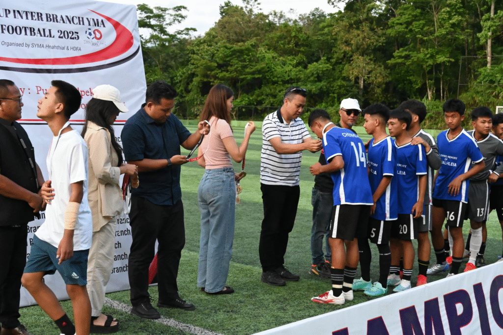 Hnahthial : The “MLA Cup Inter Branch YMA Football Tournament, 2025” concluded today at the HDFA Turf Ground, with Minister of State Pu Lalnghinghlova Hmar attending as the chief guest and presiding over the closing ceremony. Among the dignitaries present were Deputy Speaker Pu Lalfamkima, Adviser to the Chief Minister Pu H. Ginzalala, Dr. Lorraine Lalpekliana Chinzah, and MLAs Pu Jeje Lalpekhlua and Pu T. Lalhlimpuia.