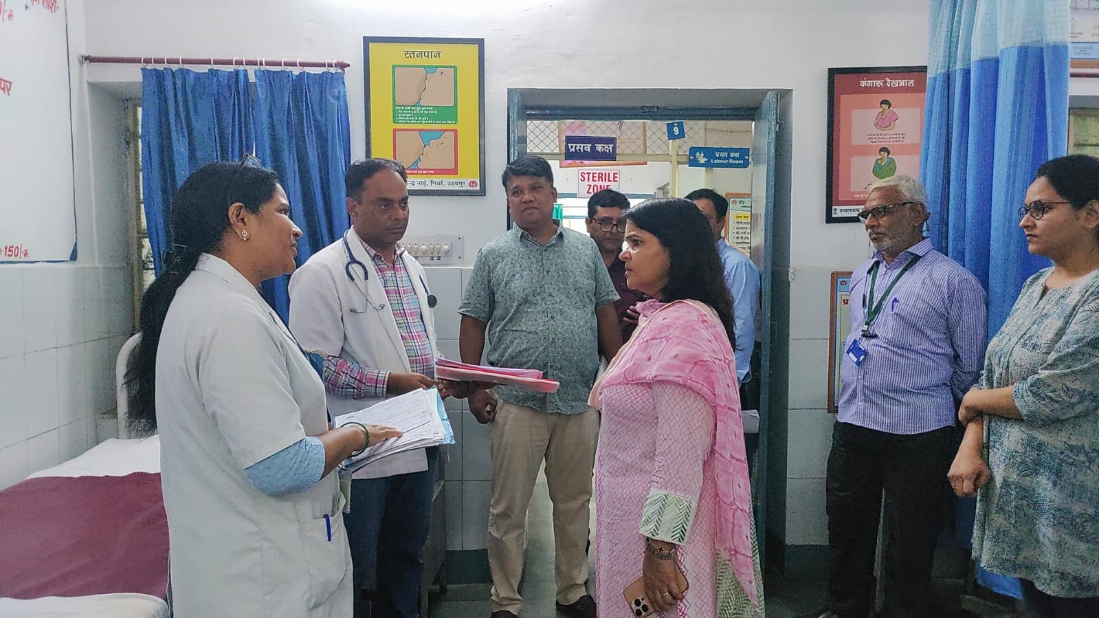 During the inspection of the Community Health Center in Phalasia, Mrs. Rathore expressed satisfaction with the facility’s operations. However, at the CHC in Kotda, she showed displeasure over cleanliness issues and mismanagement, and instructed immediate corrective action.