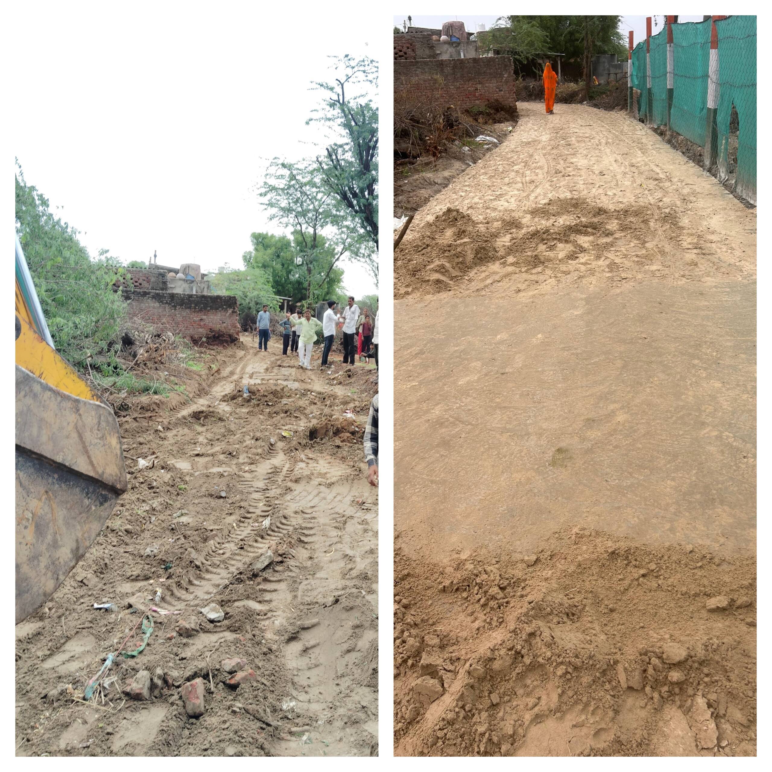 A compelling example of the campaign’s success comes from Ladana village in Fagi, where villagers had submitted a plea during the Pandit Deendayal Upadhyay Antyodaya Samarthan Camp to reclaim the encroached road connecting the main village to the cremation ground. Following the Collector’s prompt orders, SDO Rakesh Kumar led an administrative team that, within just 3 days, not only cleared the decades-old encroachment through mutual agreement but also constructed a concrete (CC) road and drainage system. What was once a narrow 4-foot alley has now become a smooth 12-foot-wide road, bringing relief to thousands.
