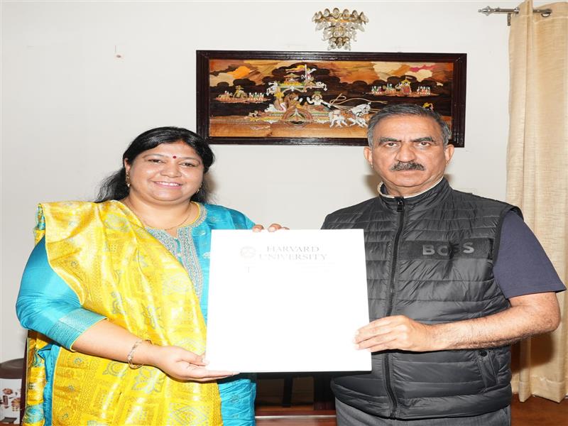 Public Policy Expert Dr. Aarushi Jain, called on Chief Minister Thakur Sukhvinder Singh Sukhu here on Sunday evening and shared her expertise in AI and digital governance and introduced her initiative AI SAVERA (System for Accessible Voice-based E-Governance and Responsive Analytics). She was selected as an Edward S. Mason Fellow and awarded the distinguished title of John F. Kennedy Scholar, a recognition granted to a select group of global change makers.