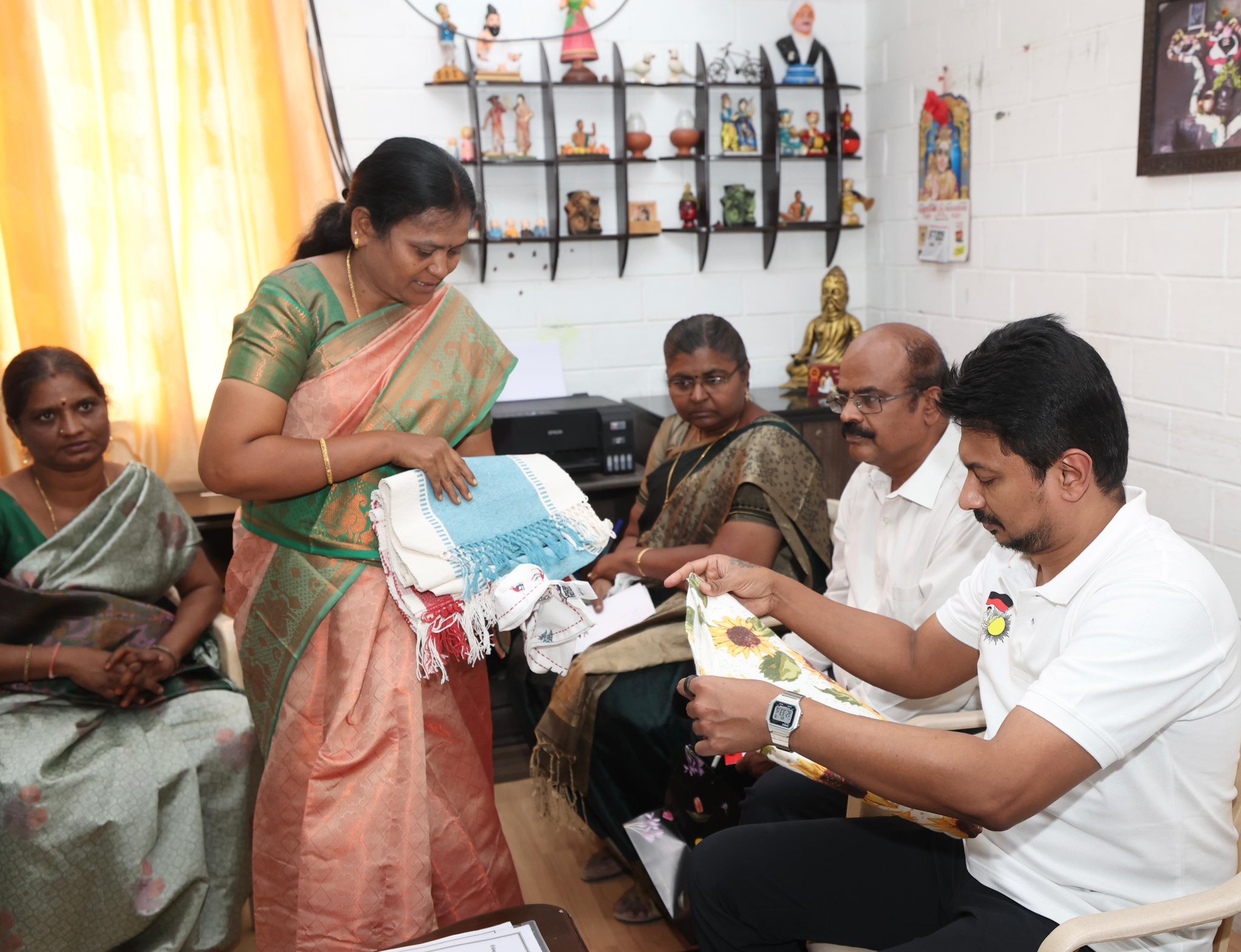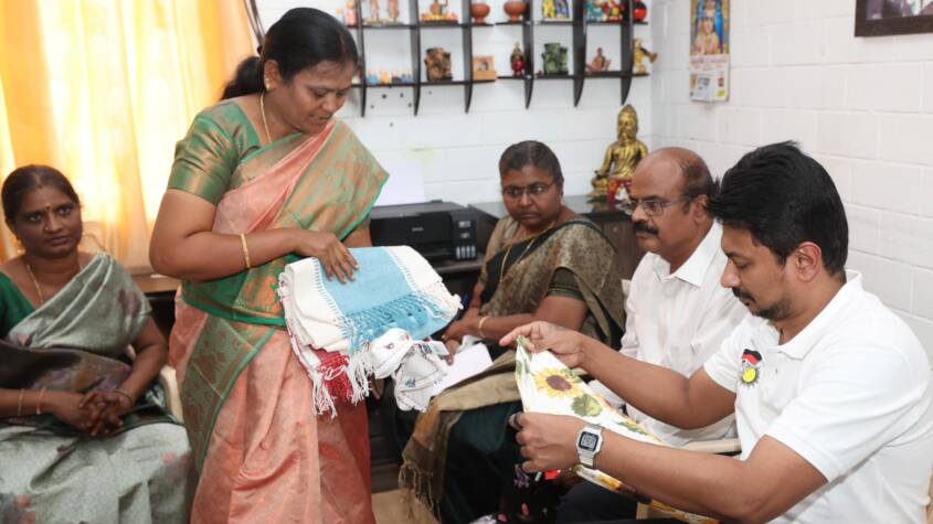 During the visit, Mr. Udhayanidhi Stalin observed the paper cup production machinery, reviewed samples, and discussed the group’s financial activities, including loan disbursement, repayment, and internal credit support. He also praised the group’s efforts in managing expenses, generating income, and building resilience through entrepreneurship.