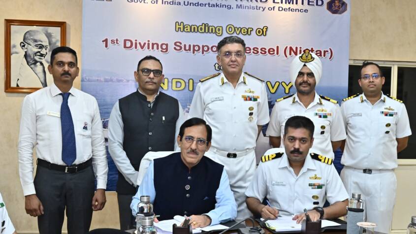 ‘Nistar’, the first indigenously designed and constructed Diving Support Vessel, was delivered by Hindustan Shipyard Limited to the Indian Navy on 08 Jul 2025 at Visakhapatnam.