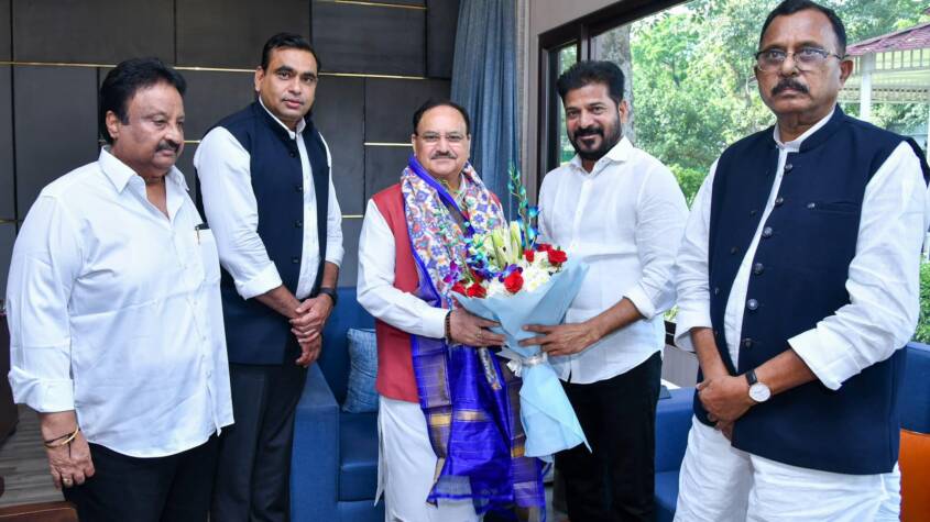 JP Nadda Meets Telangana CM Revanth Reddy to Discuss Fertilizer Supply