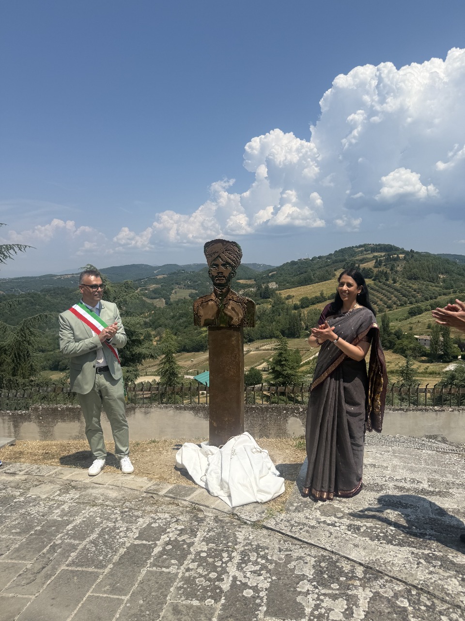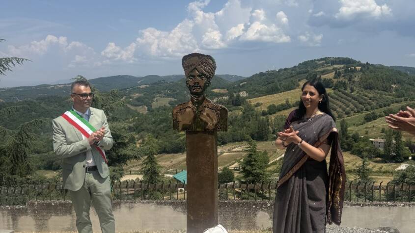 The statue was jointly inaugurated by India’s Ambassador to Italy, Ms. Vani Rao, and Mayor of Montone, Mr. Mirko Rinaldi. In a moving ceremony, the Italian military band performed the national anthems of both India and Italy. The event was attended by President of Perugia Province Massimiliano Presciutti, senior military and police officials, and a large number of local citizens.