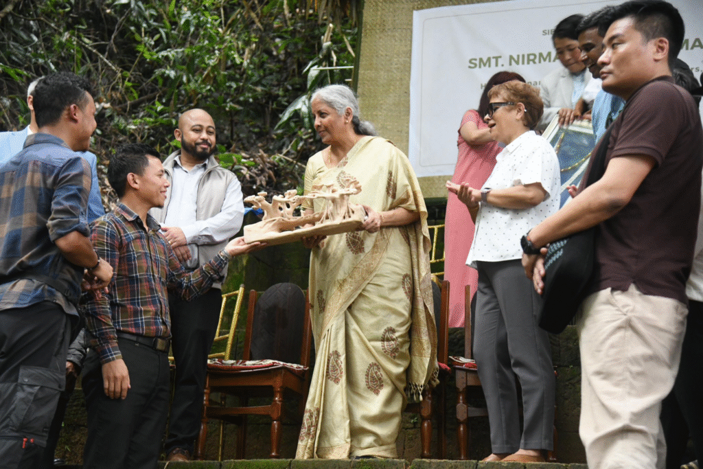 Sitharaman visited the famous living root bridge in Siej and engaged with local elders, community leaders, and beneficiaries of the Payment for Ecosystem Services (PES) programme—an initiative supported by the World Bank, KfW, and the Asian Development Bank. The PES initiative rewards communities for preserving natural resources and maintaining traditional ecological practices.
