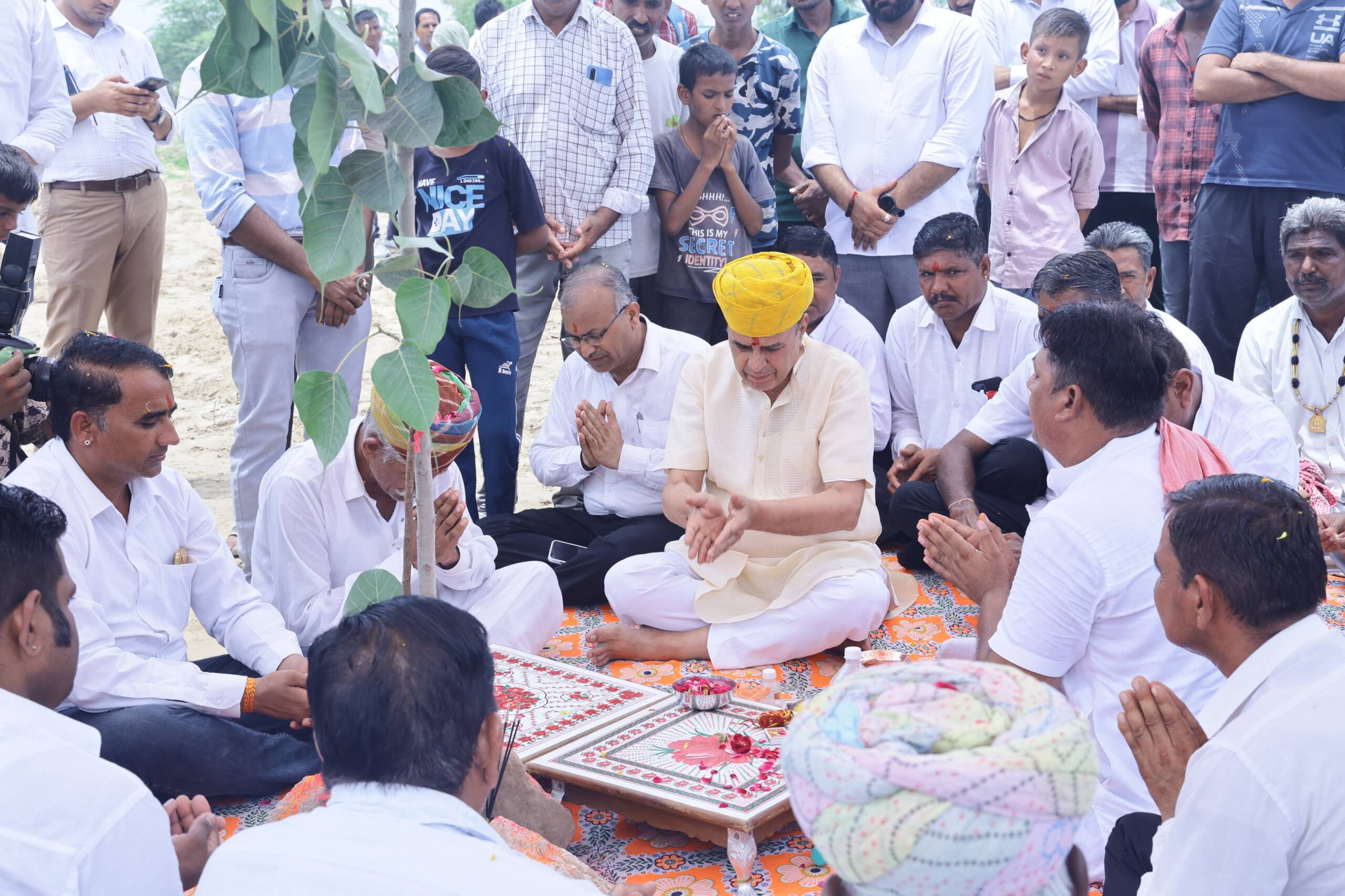 A block-level plantation programme under the ‘Mukhyamantri Vriksharopan Mahabhiyan – Hariyalo Rajasthan’ was held on Sunday at Dundara village in Luni Panchayat Samiti, Jodhpur district, in the presence of Parliamentary Affairs, Law and Legal Affairs Minister Shri Jogaram Patel as the chief guest.