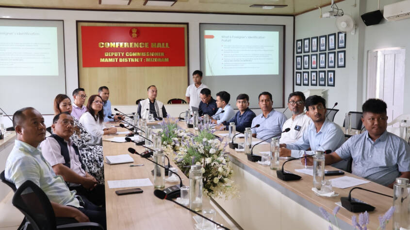 During the meeting, Pu Lalawmpuia, SDC, gave a detailed briefing on the Foreign Identification Portal and provided an update on the number of refugees from Myanmar currently residing in various locations within Mamit district.