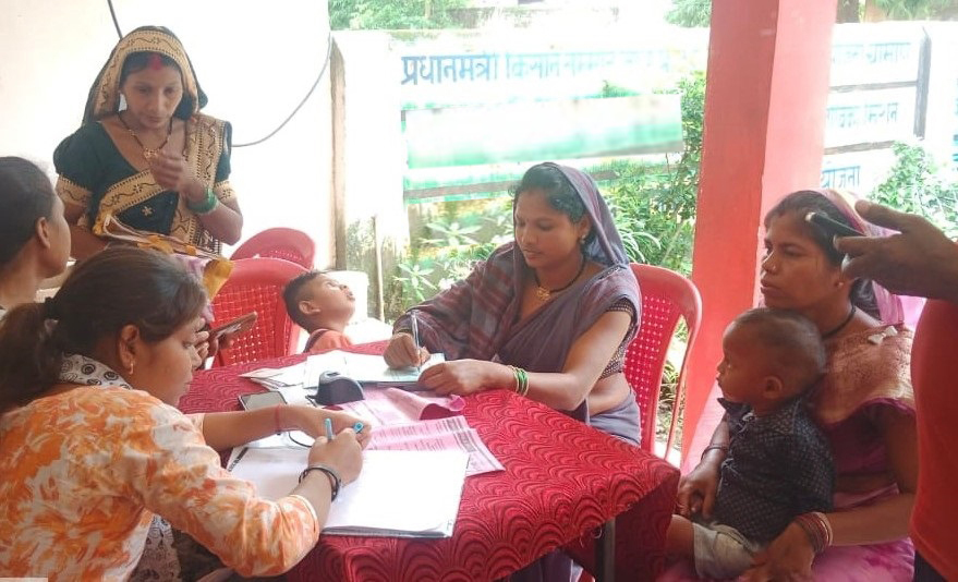 In Badbhoom, Ayushman cards were issued to 13 beneficiaries, Jan Dhan accounts were opened for 2 individuals, and health check-ups were conducted for 13 villagers. In Mangaltarai, 40 Ayushman cards were distributed, 16 received PM-Kisan benefits, 4 were enrolled in the Jan Dhan scheme, 11 were given social pensions, and 4 new ration cards were created. Free medical checkups and sickle cell tests were also carried out, along with distribution of free medicines.
