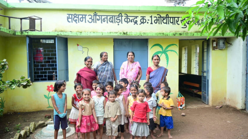 At Saksham Anganwadi Centres No. 1 and 3 in Bhothipar Khurd, and Centre No. 3 in Singhola, young children are being introduced to letters, poems, songs, and general knowledge in an age-appropriate, playful manner. The walls are adorned with colourful paintings and educational materials, and child-centric activities have sparked enthusiasm for learning. Poems like “Aloo Kachaloo beta kahan gaye the…” are being recited joyfully by the little ones.