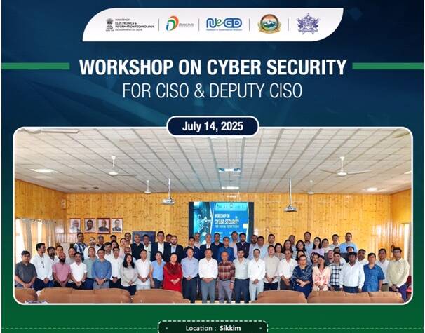 A State Capacity Building Workshop was conducted for the Chief Information Security Officers (CISOs) and Deputy CISOs of various departments under the Government of Sikkim in Gangtok, Sikkim, on 14th July, 2025. This one-day awareness workshop was organised by the National e-Governance Division (NeGD), Ministry of Electronics and Information Technology (MeitY), in collaboration with the Department of Information Technology, Government of Sikkim.