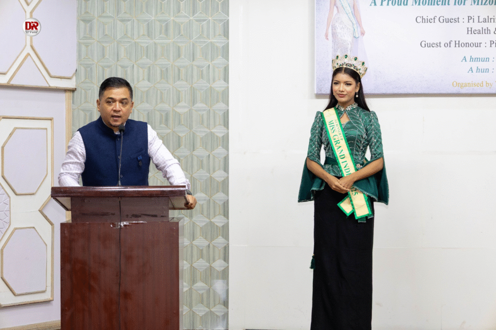 Aizawl : Social Welfare, Women and Child Development Minister Pi Lalrinpuii today graced a felicitation programme in honour of Vanlaltluangi, 1st Runner-Up of Miss Grand India 2025, held at the I&PR Auditorium.