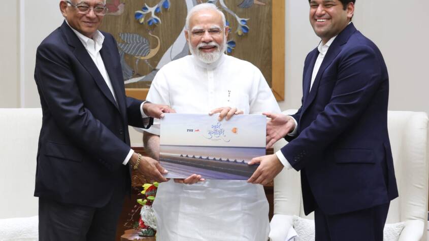 Shri Venu Srinivasan and Shri Sudarshan Venu of TVS Motor Company met the Prime Minister, Shri Narendra Modi in New Delhi yesterday. Shri Modi commended them for the effort to chronicle the beauty of Kutch and also encourage motorcyclists to go there.