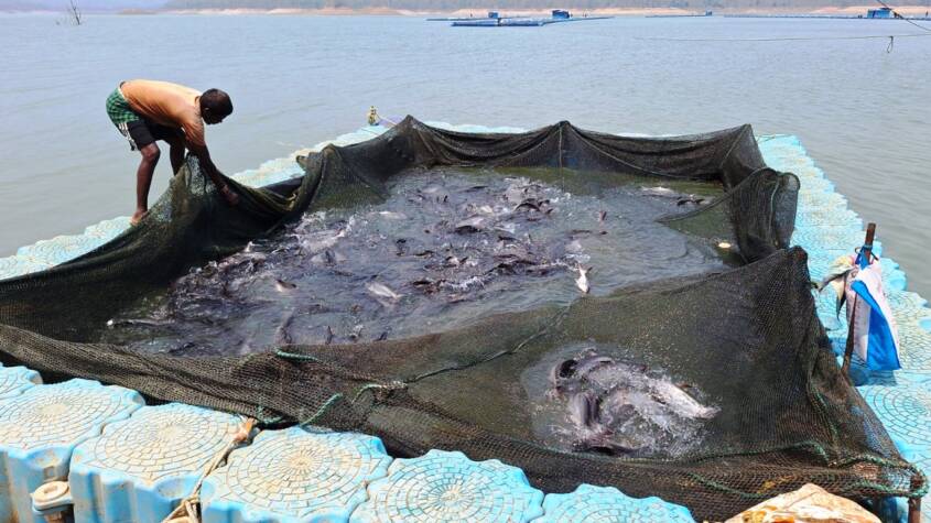 Presently, there are around 800 fish cages in the Hasdeo Bango reservoir, managed under expert supervision. Nearly 160 members from 9 fishing committees have been allocated five cages each. These fish farmers earn an average net income of ₹90,000 per year from cage culture.