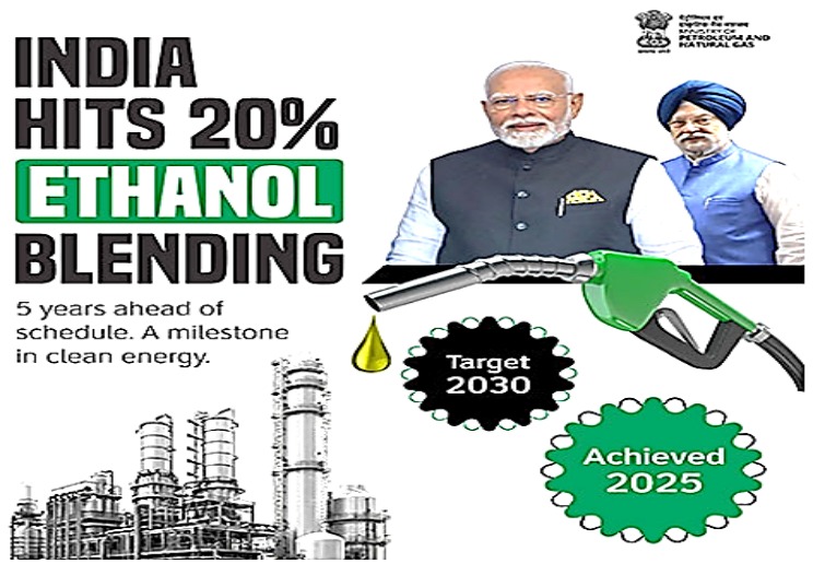 India achieves 20% ethanol blending in petrol, five years ahead of schedule