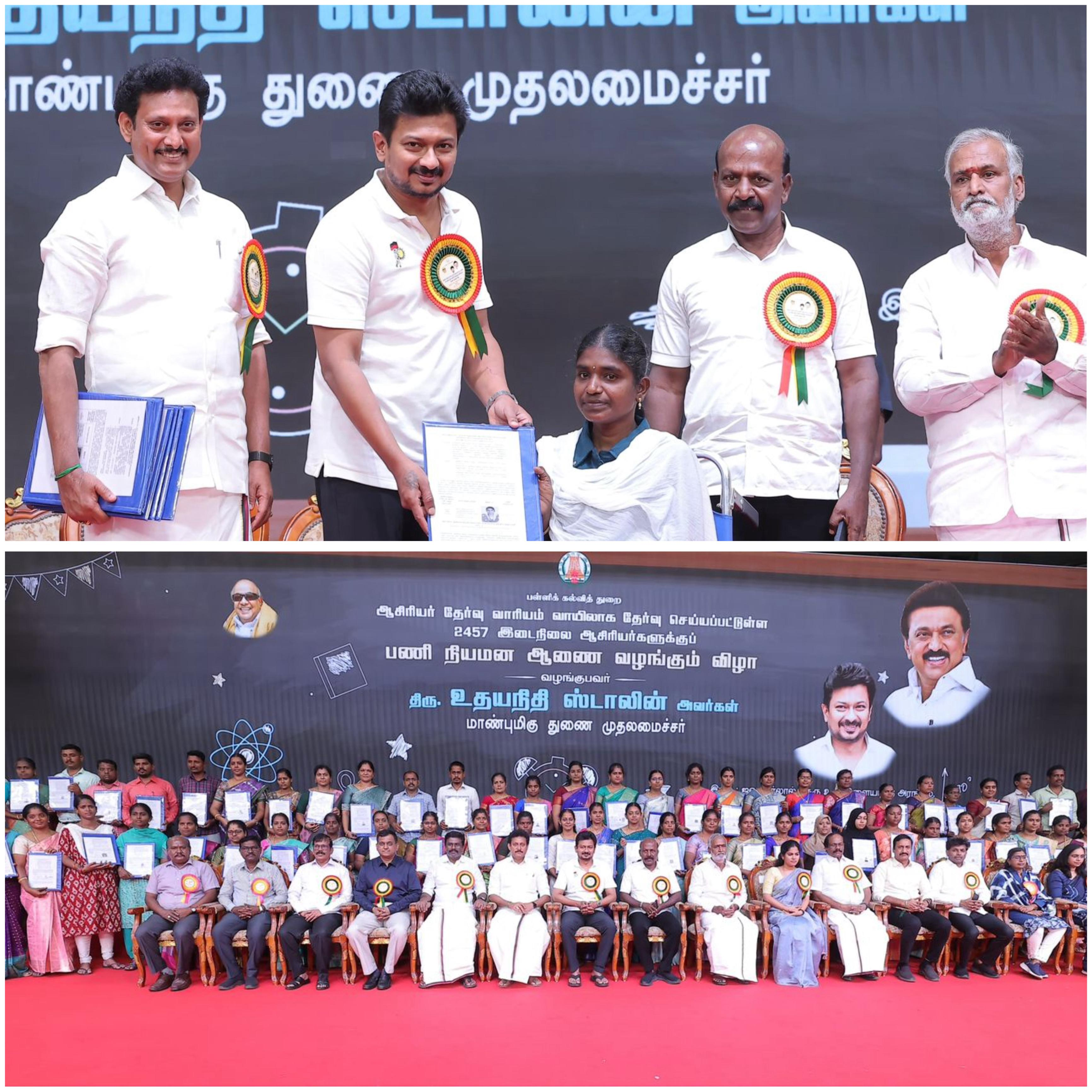 In his speech, Thiru Udhayanidhi Stalin expressed heartfelt congratulations to the newly appointed teachers, stating: