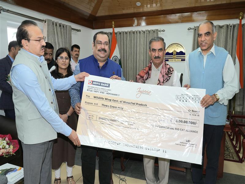 The International Big Cat Alliance (IBCA) team, led by Mr. Soumitra Dasgupta, presented a cheque of rupees three crore to Chief Minister Thakur Sukhvinder Singh Sukhu for the conservation and management of the newly notified Tsarap Chu Conservation Reserve.