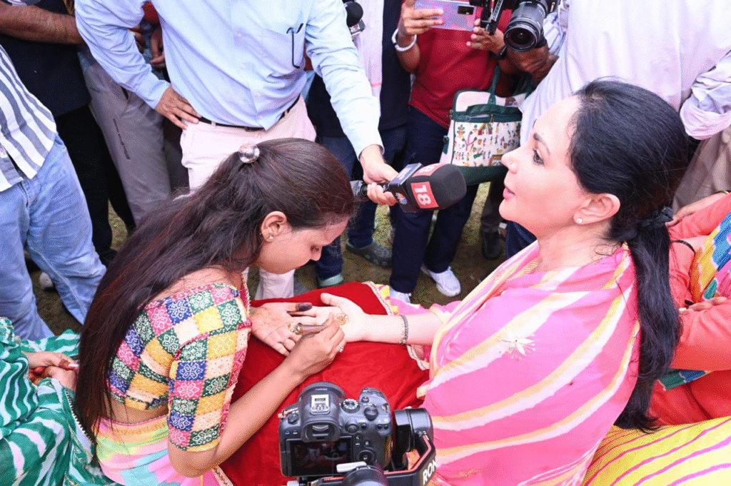 She also personally applied mehendi and tasted ghevar, symbolizing her connection to Rajasthan’s folk traditions. She said, “May the Teej festival continue to bloom like the fragrance of mehendi worn by women.”