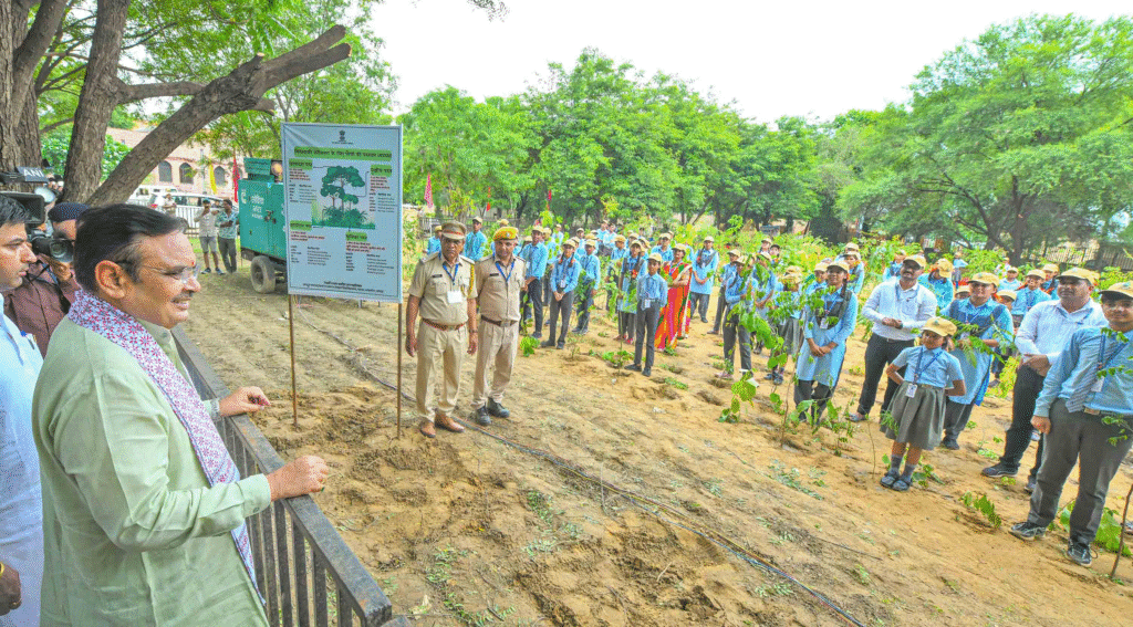 Parliamentary Affairs Minister Shri Jogaram Patel noted that under CM Sharma’s leadership, Rajasthan is moving swiftly toward a green revolution. Forest and Environment Minister (Independent Charge) Shri Sanjay Sharma emphasized not only tree planting but also long-term protection to ensure their growth into full trees. Chief Secretary Shri Sudhansh Pant provided an overview of plantation efforts across the state.