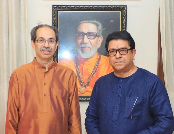 Inside Matoshree, the two cousins posed for photographs beside a portrait of Balasaheb Thackeray, the patriarch of the Thackeray family and founder of the original Shiv Sena. While the meeting was brief, it held political significance, especially in the context of the growing speculation around a potential alliance between the two factions.