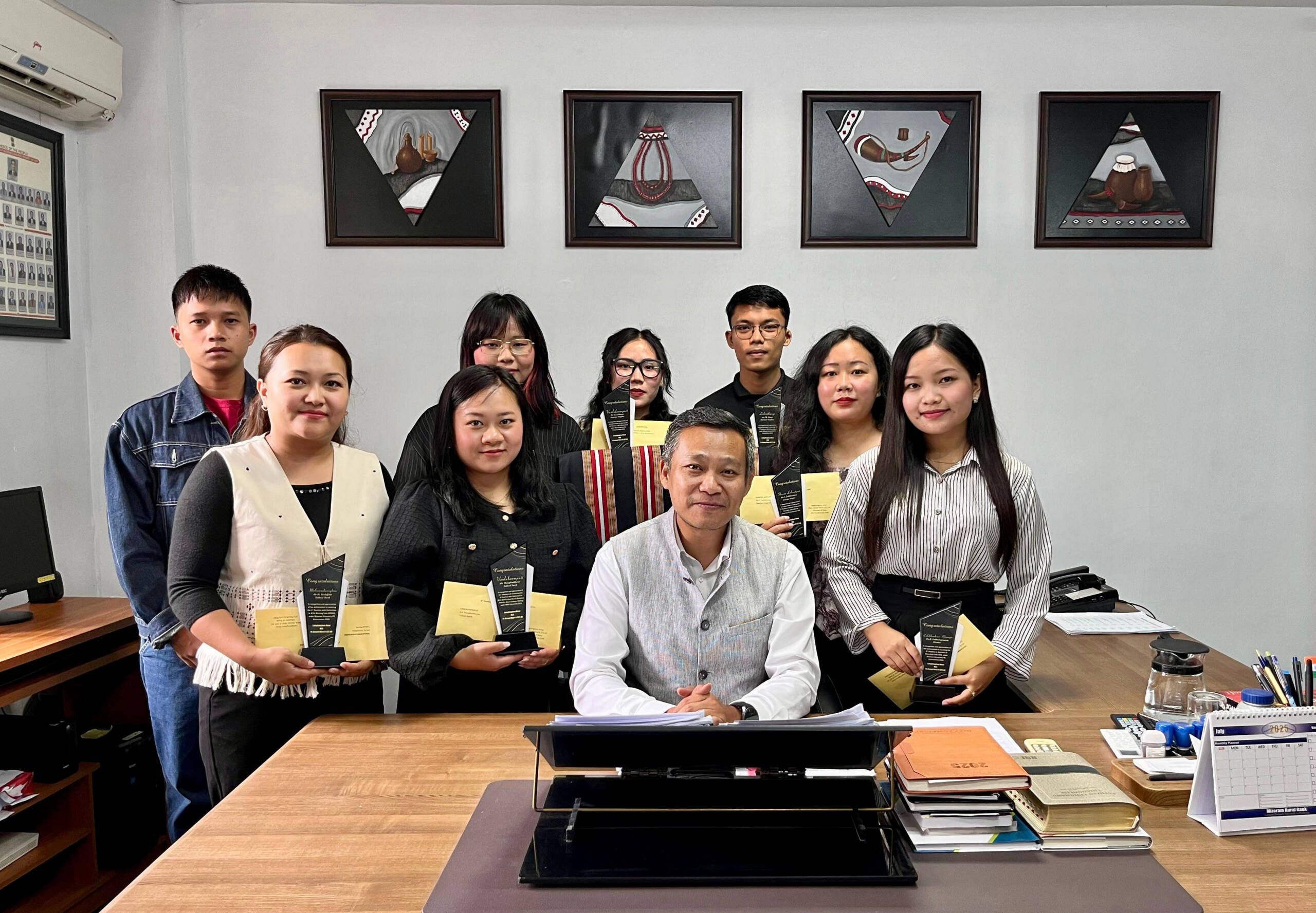 Aizawl : Pu Lalnghinglova Hmar, Minister of State (Sports & Youth Services Dept., etc.) and MLA of Aizawl West II Assembly Constituency, held a felicitation ceremony this afternoon at his office chamber in MINECO, Aizawl to honor the top 10 rank holders from his constituency in the Undergraduate and Postgraduate Examinations 2025.