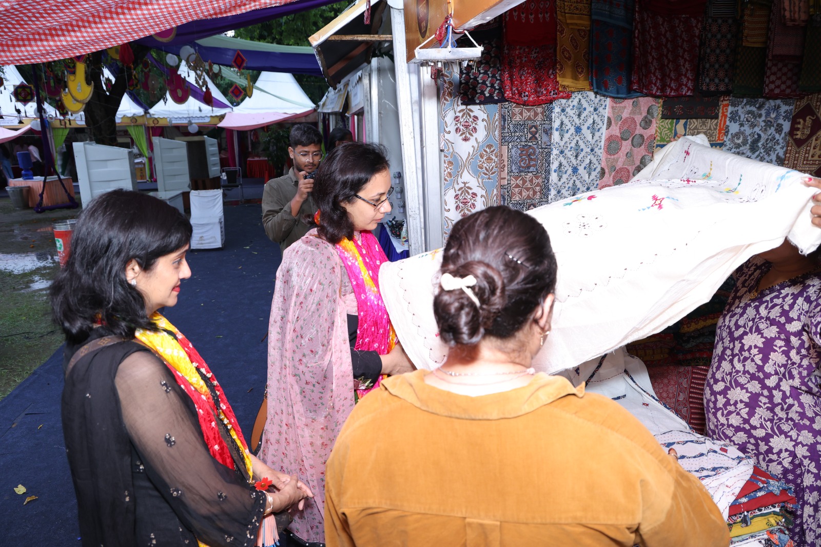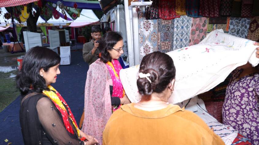 State Project Manager of Rajeevika, Mrs. Neeru Meena, informed that 47 stalls were set up by nationally awarded women artisans associated with self-help groups through Rajeevika. These stalls featured hand-block printed bed sheets, suits, sarees, bangles, jewellery, leather goods, lac items, mojris (traditional footwear), and traditional Rajasthani cuisine. Goods worth over ₹52 lakh were sold through Rajeevika stalls alone.