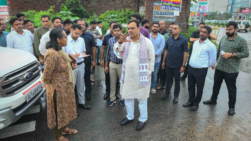 CM Bhajanlal Sharma Conducts Extensive Inspection of Jaipur City, Reviews Rain-Related Situation – Orders Immediate Road Repairs and Drainage Solutions