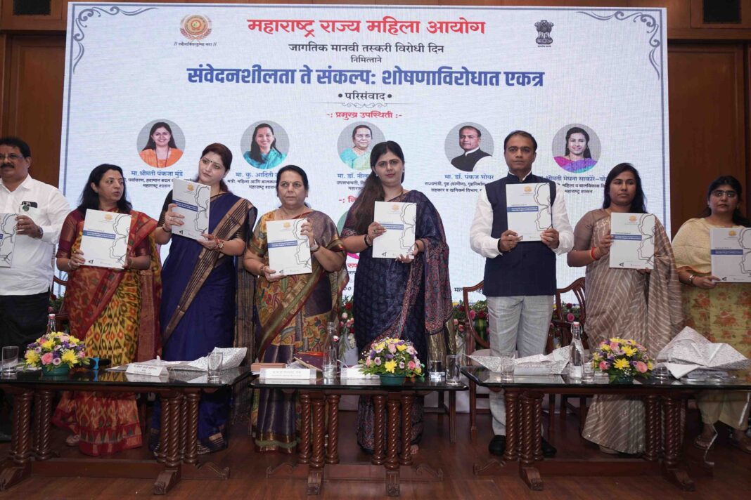 On the occasion of World Anti-Human Trafficking Day, the Maharashtra State Commission for Women organized a workshop titled “From Sensitivity to Resolution: Fight Against Exploitation” at Sahyadri Guest House. The event was attended by Animal Husbandry and Environment Minister Pankaja Munde, Women and Child Development Minister Aditi Tatkare, State Women’s Commission Chairperson Rupali Chakankar, Minister of State for Home (Rural) Pankaj Bhoyar, Minister of State for Women and Child Development Meghna Bordikar, and MLAs Pragya Satav, Shreejaya Chavan, Manisha Kayande, Haroon Khan, and Sana Malik. Also present were Member Secretary Nandini Awade, representatives from social organizations, Anti-Human Trafficking Police units, Legal Services Authority, and national-level experts and panelists.