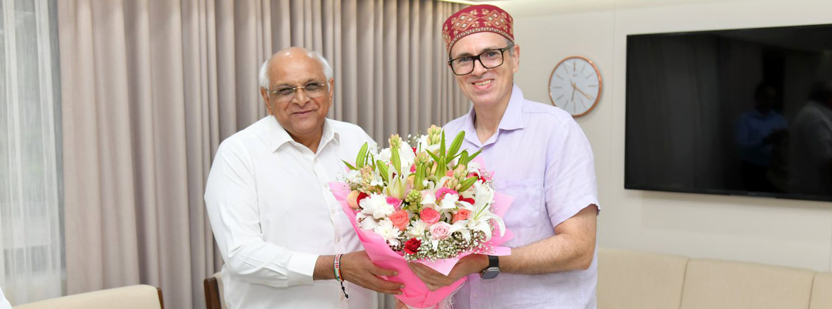 Gandhinagar : Jammu & Kashmir Chief Minister Shri Omar Abdullah paid a courtesy visit to Gujarat Chief Minister Shri Bhupendra Patel in Gandhinagar on Wednesday evening.
