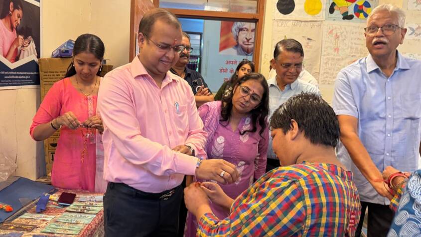 The Director visited classrooms, kitchens, and other facilities at the Government School for Intellectually Disabled. He engaged in light-hearted conversations with the children. The specially-abled children tied handmade rakhis on his wrist and recited poems. Mr. Modi also appreciated and encouraged the children after seeing their paintings in their notebooks.