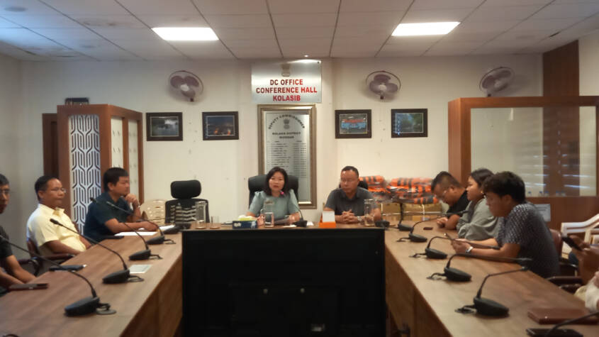 Kolasib, Aug 25 : A meeting of Zonal Officers, Village Disaster Management Committees (VDMCs) of Khamrang and Hortoki-I, was held at the DC Conference Hall in Kolasib to discuss disaster management preparedness. The meeting was chaired by Pi B. Malsawmtluangi, Additional Deputy Commissioner (Addl. DC), who also handed over disaster management equipment during the session.