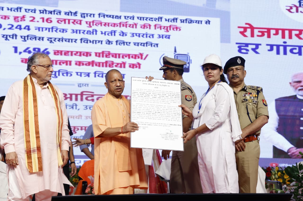 Lucknow : Giving wings to the dreams of Uttar Pradesh’s youth, Chief Minister Yogi Adityanath on Sunday handed over appointment letters to 1,374 selected assistant operators and 120 workshop employees in the UP Police Telecom Department. The recruitment process was not only quick and time-bound but also completely transparent and impartial.